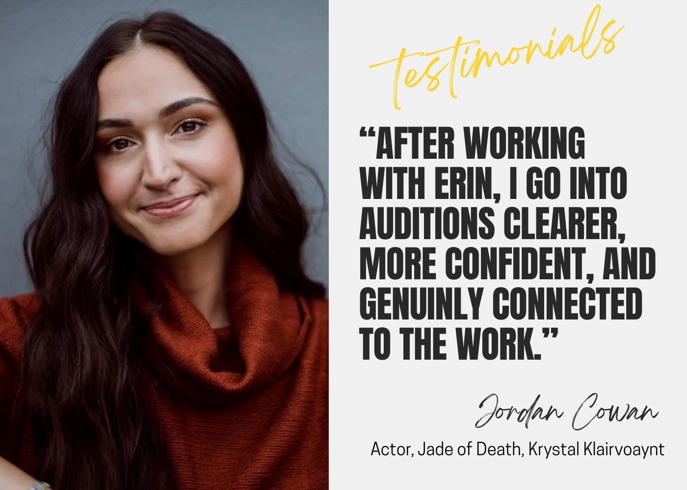 If you’re just starting out, we can focus on foundational acting techniques to help you build your craft. For more experienced actors, we work on refining existing skills and exploring new approaches to deepen your work.